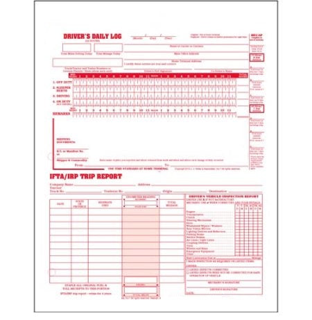 This 3-In-1 Driver's Daily Log is a 3-Part Carbonless form. This logbook form helps to comply with IRP, IFTA, DOT, and FMCSA requirements.