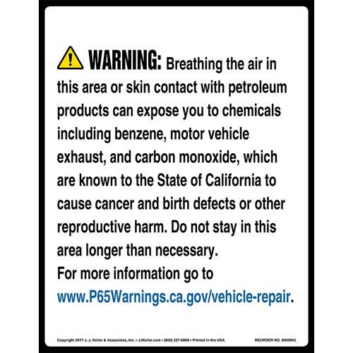 California Prop 65 Vehicle Repair Warning Sign