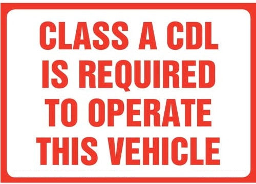 This Class A CDL Is Required Decal measures 5" x 3.5" and is printed on premium exterior grade vinyl with adhesive backing. Place this decal in each one of your vehicles to be sure your drivers possess a CDL license in order to operate the vehicle.