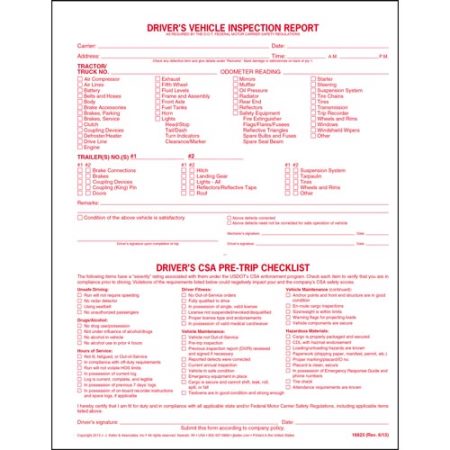- Includes Pre-Trip CSA Checklist