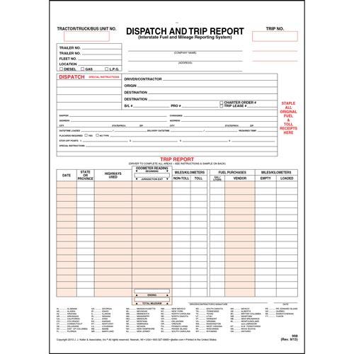 This Dispatch and Trip Report is 2 Part carbonless and is sold per each. Designed for shipper and consignee data, loading and delivery information.