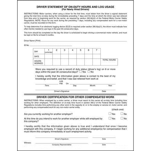 This Drivers Statement of On Duty Hours is designed for the intermittent, casual or occasional driver and comes in single ply, 50 sheets per pad.
