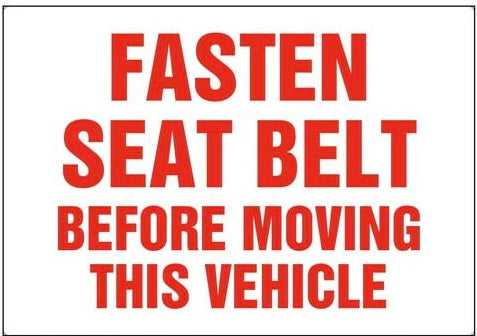 This Fasten Seat Belt Before Moving This Vehicle Safety Decal is printed on premium exterior grade vinyl with adhesive backing and UV protection.