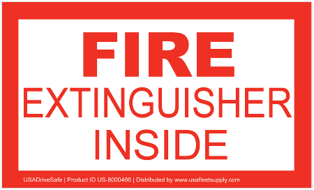 This Fire Extinguisher Inside Decal measures 5" x 3" and is printed on exterior grade vinyl with adhesive backing. Sold per each with quantity pricing available.