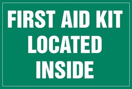 This First Aid Kit Located Inside Decal is printed on premium exterior grade material with adhesive backing and a UV protected glossy front. It measures 5" W x 3" H, with a bright green background and crisp white text, Per DOT requirements, this important vehicle safety decal informs others people that a First Aid Kit is located inside of the vehicle. This is extremely useful in emergency situations.