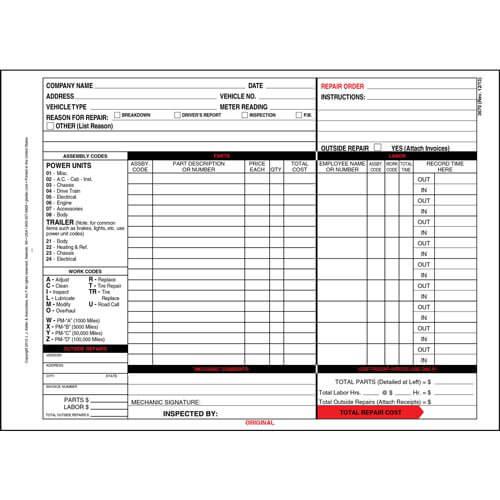 Garage Repair Order with Work Codes 3-Part Carbonless