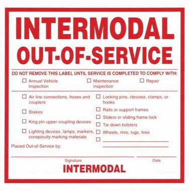 This Intermodal Out of Service Label is designed as a list of Purpose For the Inspection as well as the intermodal specific chassis items to be marked, and more.