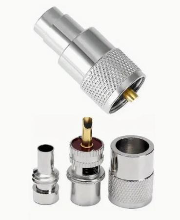 This PL-259 solder-on connector is designed for RG8 coaxial cable.
