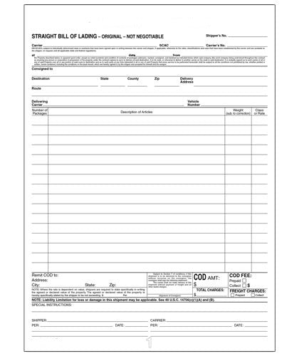 This Non-Hazardous Materials Bill of Lading is a 2 Part carbonless form sold per each. Used for shipping non-hazardous materials.