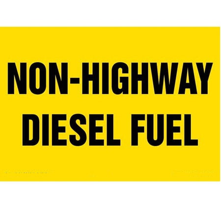 This Non Highway Diesel Fuel Label in Yellow indicates the presence of non highway diesel fuel, measures 5" x 3" printed on exterior grade material with adhesive backing.