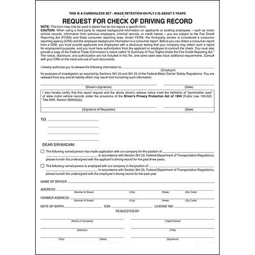 - Complies with FMCSA Regulations 391.23.