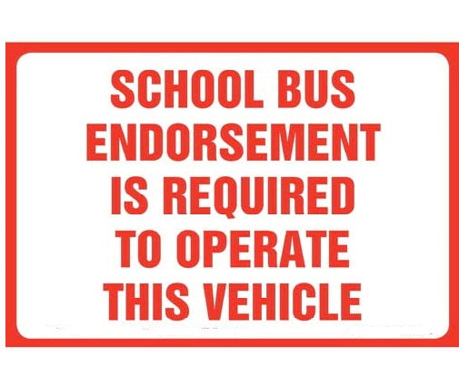 School Bus Endorsement Is Required To Operate This Vehicle Decal