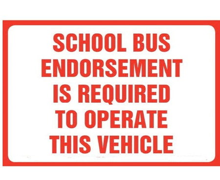 This School Bus Endorsement Is Required To Operate This Vehicle Decal measures 5" x 3.5" and is printed on exterior grade material with adhesive backing.