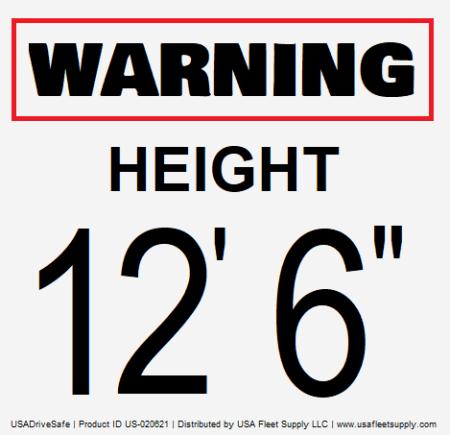 This Vehicle Warning Height 12' 6" Window Cling measures 3" x 3". This window cling is designed to be placed on your vehicle's interior windows to warn driver's of the vehicle height. This can be very important for temporary drivers or alternating drivers.