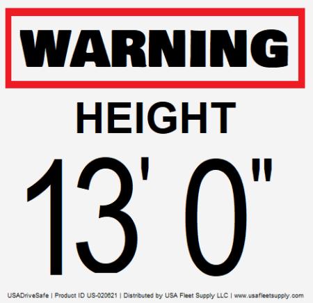 Warning Height 13' 0" Window Cling