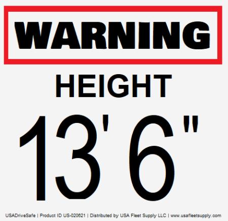 This Warning Height 13' 6" Window Cling measures 3" x 3" and is designed to be placed on interior windows to warn drivers of their vehicle height. This is extremely important for temporary drivers or alternating drivers/vehicles.